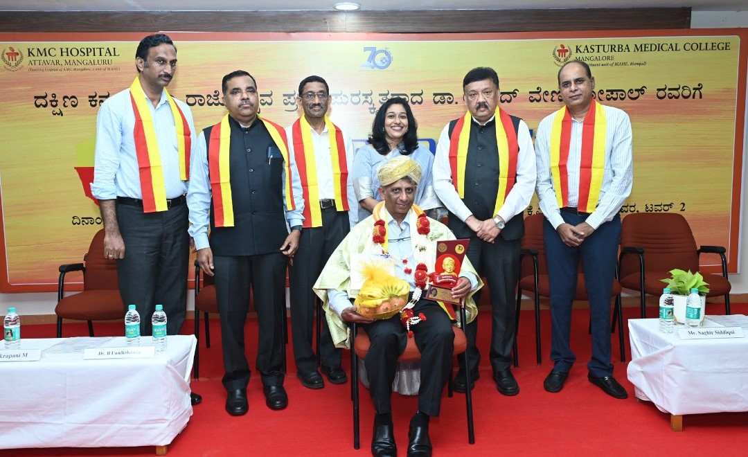 The "Abhinandana Programme" was held on November 4, 2024, at KMC Hospital Attavar, to honor Dr. Anand Venugopal, Chief Operating Officer of MAHE Teaching Hospitals, for receiving the prestigious D.K. District Kannada Rajyotsava Award 2024.