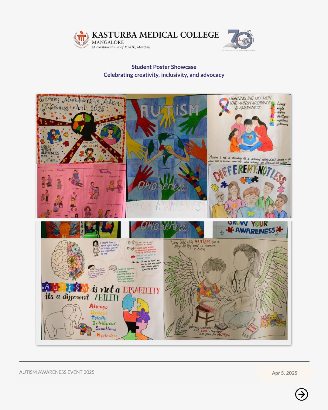 The Department of Pediatrics, KMC Mangalore, in collaboration with Government Wenlock Hospital, Indian Academy of Pediatrics—DK Branch, and Athena College of Nursing, hosted the Autism Awareness Event 2025 on April 5 at the Regional Advanced Pediatric Care Centre.