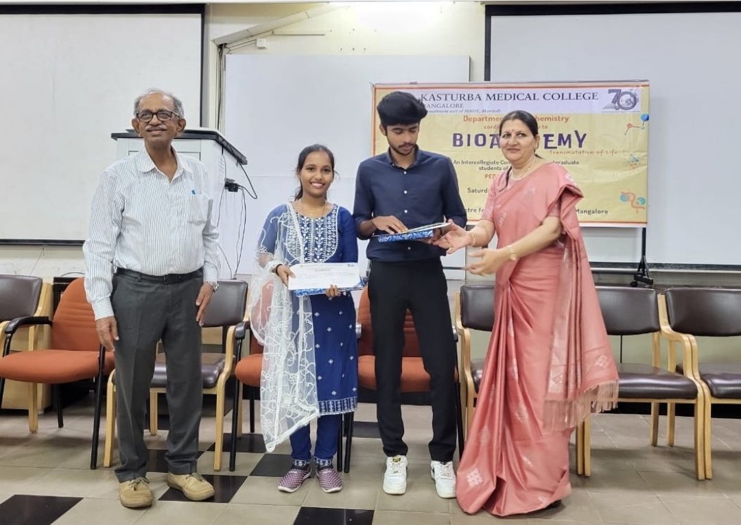 The Department of Biochemistry, Kasturba Medical College, Mangalore, hosted "BIOALCHEMY: Transmutation of Life!" on 30th November 2024. This intercollegiate competition was organised for postgraduate students of Biochemistry, focusing on pedagogy and debate.