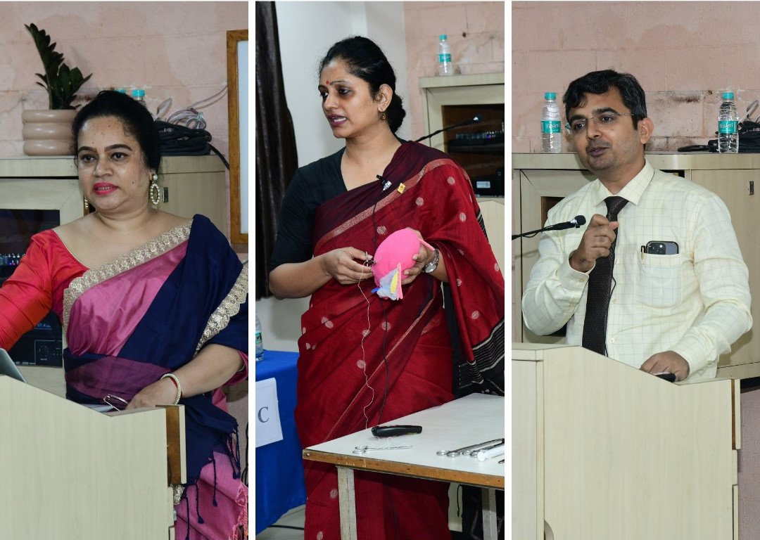 The scientific sessions included talks by Dr. Rajanigandha Vadgaonkar on the anatomy of the female pelvis, Dr. Shraddha Shetty K on clinical anatomy, Dr. Sonali Ullal on imaging, and Dr. Karthik K S on clinical anatomy in gynecology. Dr. Mamatha T. conducted a demonstration on pelvic anatomy using the Anatomage Table.