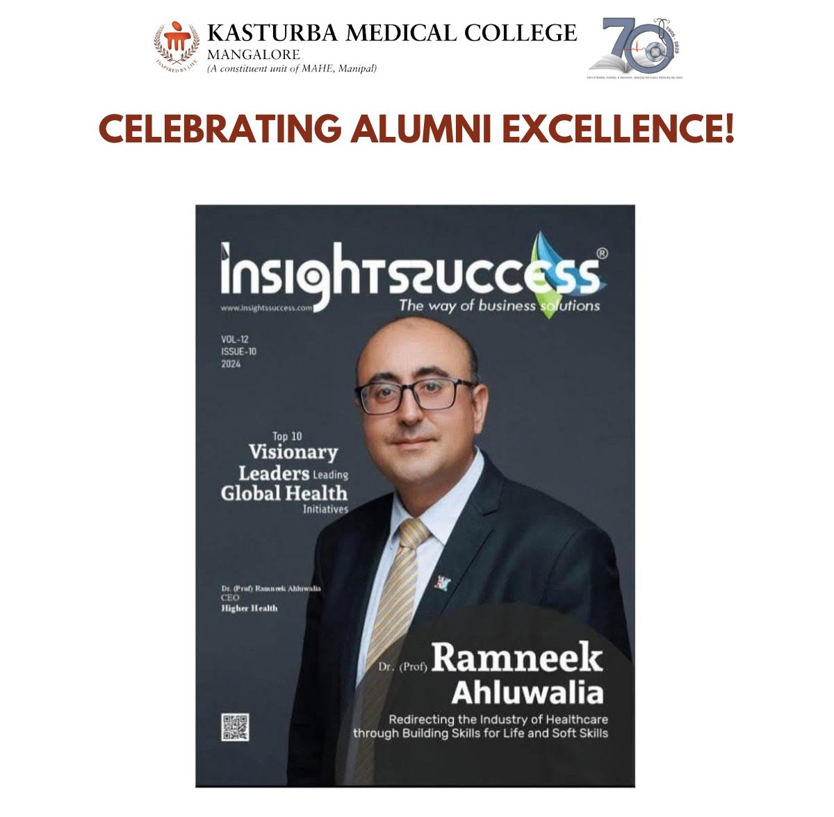 Dr. (Professor) Ramneek Ahluwalia (MBBS Batch of 1997) has been recognised as one of the Top 10 Visionary Leaders Leading Global Health Initiatives by Insights Success World