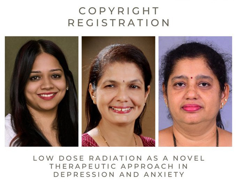 Congratulations to Dr. Megha Gokul, Dr. Nayanatara ArunKumar, and Dr. Rekha D Kini from the Dept of Physiology, Kasturba Medical College, Mangalore, on securing copyright registration for their work, "Low Dose Radiation as a Novel Therapeutic Approach in Depression and Anxiety."