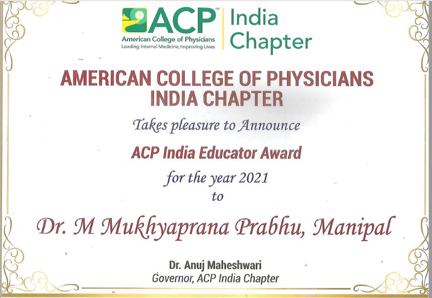 16) Dr M Mukhyaprana Prabhu (Medicine) being felicitated by American College of Physicians, India Chapter on occasion of Doctor’s Day Celebration as ‘Corona Saviour’.