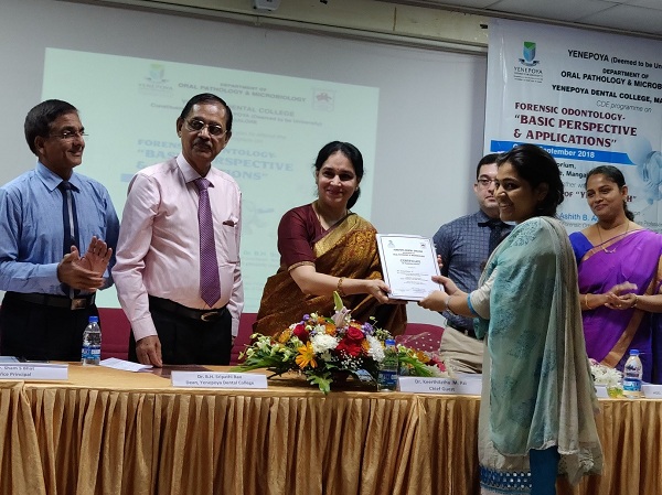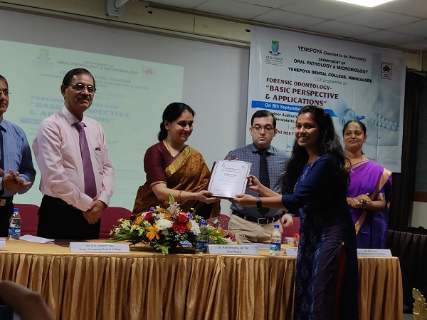 Students of Manipal College of Dental Sciences, Mangalore guided by Centre for Forensic Odontology, Manipal Academy of Higher Education Manipal won the awards at e-poster competition in CDE program titled “Basic Perspective and Applications in Forensic Odontology” organized by Yenepoya Dental College and Hospital, Mangalore.