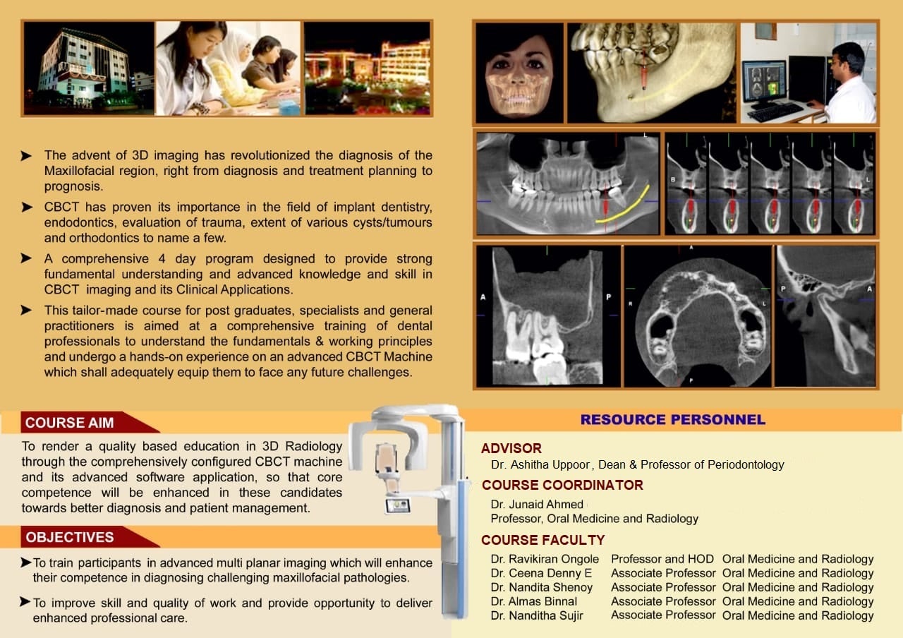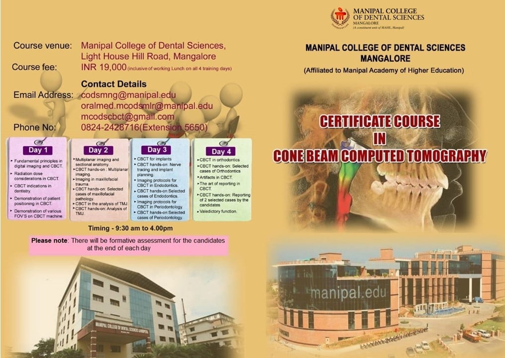 Announcing the commencement of the Certificate Course in Cone Beam Computed Tomography at Manipal College of Dental Sciences, Mangalore from 23rd to 26th, March 2022. We are restricting the seats to a maximum of 15 candidates due to the ongoing pandemic.