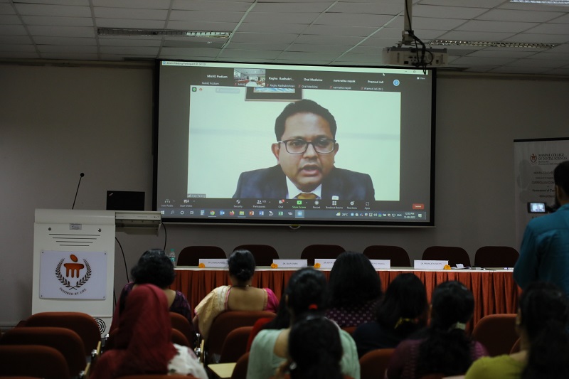 Dr. Pushpanjali, Professor and head department of Public Health dentistry, Faculty of Dentistry, Ramaiah University, spoke on the topic "Assessment in Clinical Dentistry". She gave clinical demonstrations and conducted an engaing session on the importance of aligning the outcomes/competencies to teaching and assessment. She introduced the gathering to the various criterion involved in developing objective competency-based assessment.