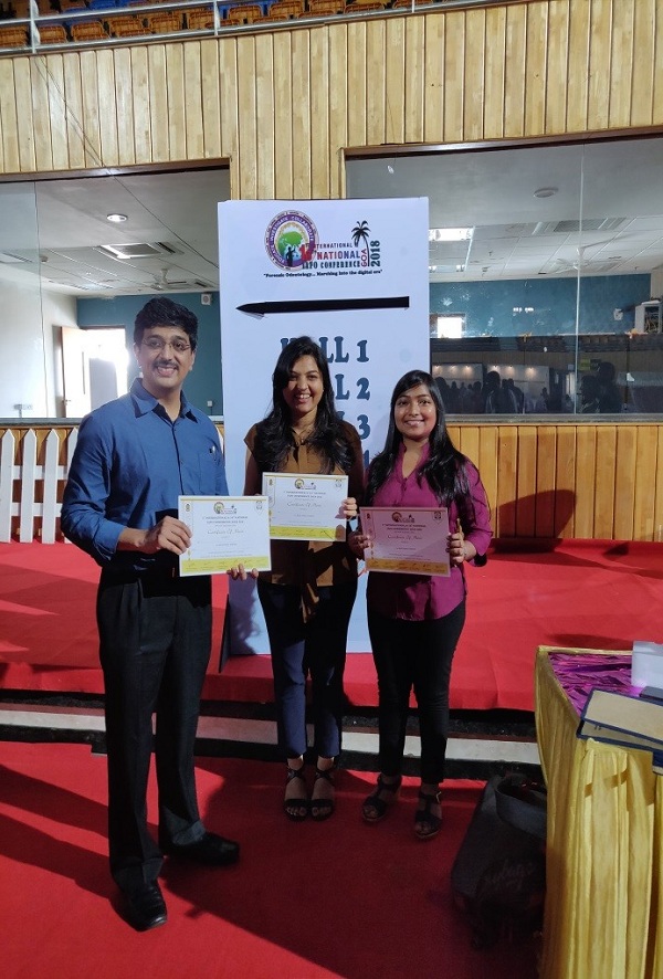 1st international and 16th National Conference of the Indian Association of Forensic Odontology was held on 29th - 30th September, 2018 at Goa. Centre for Forensic Odontology, MCODS, Mangalore actively participated in the event with three staff members Dr Srikant N, Dr Nandita KP, Dr Amitha Lewis and four students Dr. Nitin (intern), Dr.Annapurna, (intern), Mr Abhinav (final year), Ms Vaishnavi (final year) contributing to the paper and poster presentations and delebrations of the conference. There were around 330 scientific research paper/posters presented at the conference in the categories of Faculty, Postgraduates and Undergraduates.