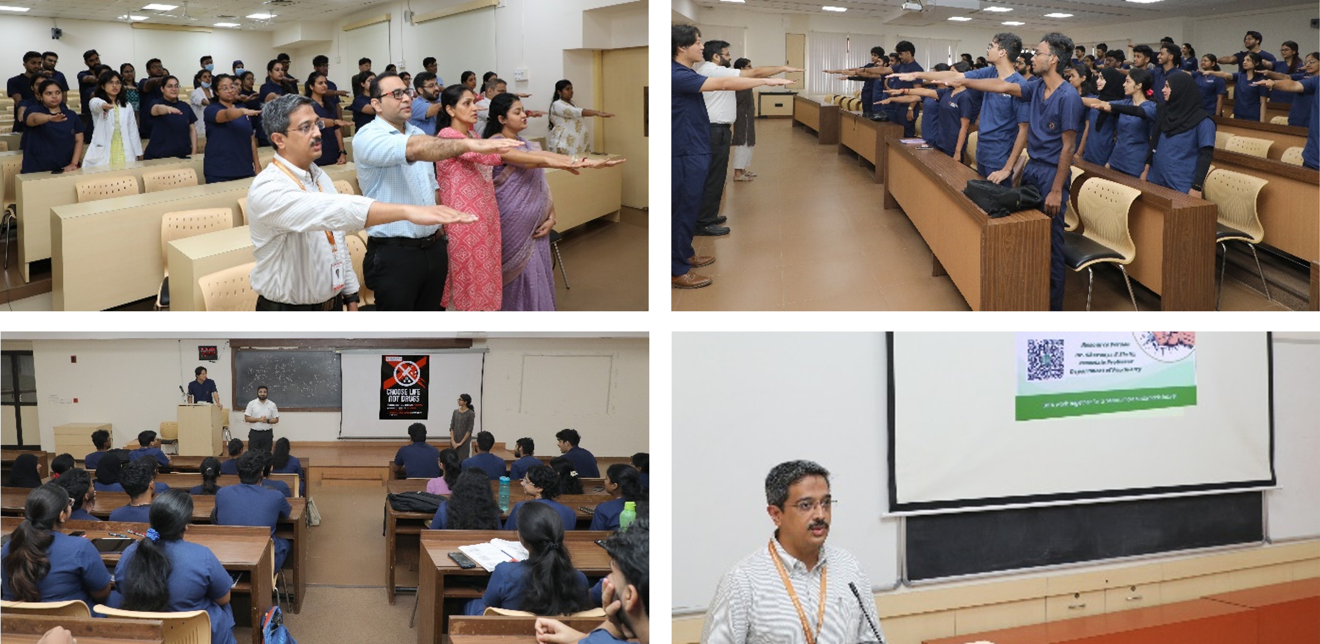 Departmental awareness sessions were conducted as part of the ongoing Nasha Mukt Bharat campaign. Dr. Mithun Pai elaborated on the dangers of substance abuse, preventive measures, and the significance of early intervention. The session encouraged interaction, including discussions and real-life examples to illustrate the consequences of drug use.