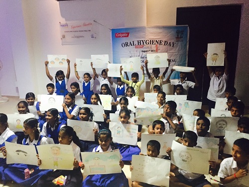 On this occasion a drawing competition was conducted with the theme “Healthy Smile is a Beautiful Smile” for the students of 5th, 6th and 7th standards at the Dakshin Kannada Zilla Panchayat Higher Primary School, Mannagudda Mangalore. A talk on ‘importance of oral hygiene’ was given by Dr. Deepa Kamath, and Dr. Swati demonstrated the brushing techniques to the children. Around 65 students participated in the drawing competition. Drawing materials for the competition was provided to the children. The best 3 drawings were given prizes. Toothpastes were distributed to the students, which was sponsored by Colgate Palmolive Pvt Ltd.