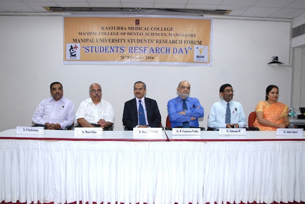 On the 20th of February, 2016, the MCODS Mangalore MUSRF hosted its first Research day in collaboration with the KMC Mangalore MUSRF. The event received an outpouring of interest with many participant and observers eager to be a part to be a part of Research day. The day was inaugurated at 10:00 am with eminent guests Dr. M.V. Prabhu, Dean, KMC, Mangalore, Dr.Unnikrishnan, Associate Dean, KMC, Mangalore, Dr. M. Chakrapani, Associate Dean, KMC Mangalore and Dr. Ashita Uppoor, Associate Dean, MCODS, Mangalore.