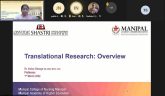 The fourth lecture series on “Challenges and Strategies in Translational Research Practice” was held on 4th March 2022 between 6.30 to 7.30 pm (IST). Dr. Praveen P Nekkar Rao, Assistant Professor, Pharmaceutical Science, School of Pharmacy, Health Sciences Campus, University of Waterloo, Waterloo, Canada was the speaker. He addressed the barriers that can curb productivity and the swift translation of research into new health care advances. Furthermore, he focused on the promotion of multidisciplinary collaboration among laboratory and clinical researchers as a strategy for the initiation and conduction of translational research in the nursing discipline.