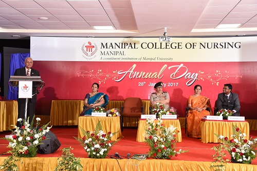 “Nursing care is incomplete without the humane touch. And, notwithstanding the importance of advancing technology, this one aspect can never be separated from the nursing profession,” said Major General Elizabeth John, Principal Matron, Army Hospital, New Delhi while addressing students, faculty, parents and others on Saturday at the 27th Annual day of Manipal College of Nursing Manipal at the Dr TMA Pai Hall here.