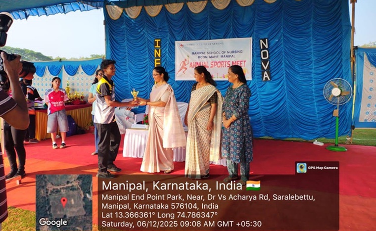 Manipal School of Nursing, MCON, MAHE, Manipal, conducted an annual sports meet on 06 December 2025. Dr. Melita Sheilini, Associate Professor, Department of Medical Surgical Nursing, MCON, MAHE, Manipal, was the chief guest of the program.