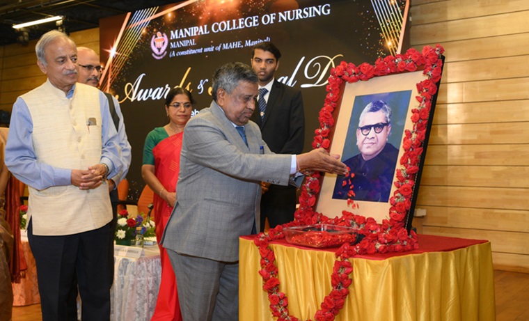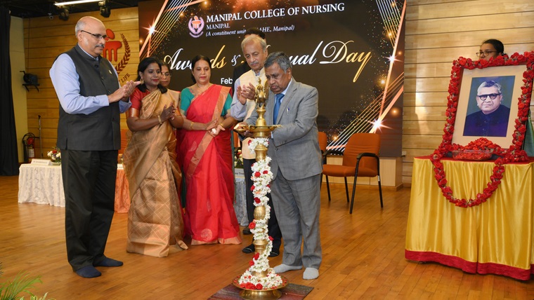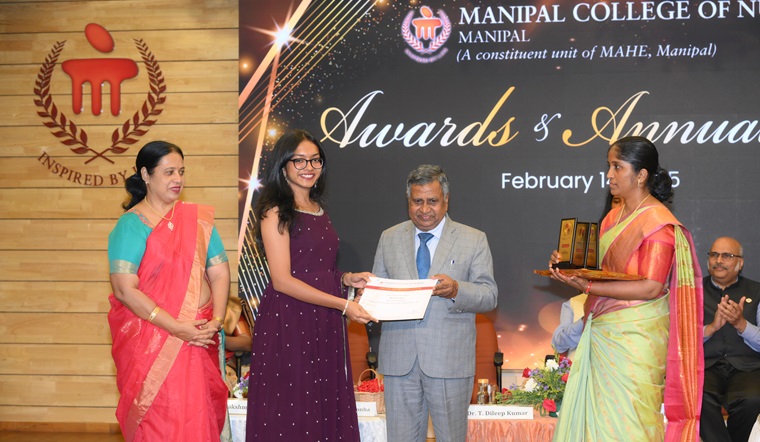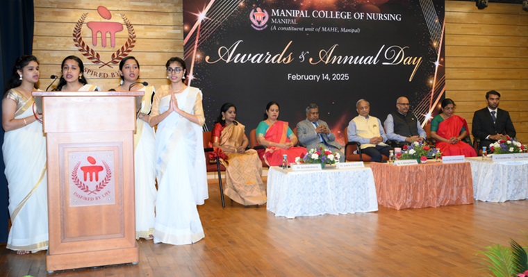 “In the future era of specialization, there is an increasing need for specialized nursing. Manipal has truly reached the length and breadth of the world with its excellence" said the Chief Guest of the day, Dr. T Dileep Kumar, President, Indian Nursing Council, New Delhi, during the 35th Awards and Annual Day of Manipal College of Nursing (MCON), Manipal Academy of Higher Education (MAHE), Manipal, held on 14 February 2025, at Dr TMA Pai Auditorium, MAHE, Manipal. He also emphasized the importance of a nurse in the health care delivery system and called for investing money in nursing, creation of nursing positions, interprofessional leadership and enhancing service delivery.