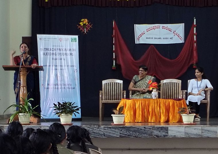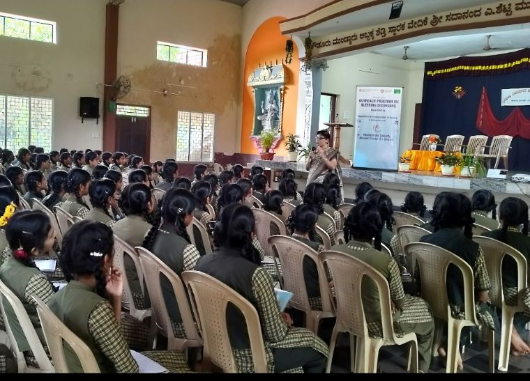 The Department of Fundamentals of Nursing, Manipal College of Nursing, in collaboration with the Hemophilia Society Manipal Chapter, Kasturba Hospital Manipal, organized an academia-industry collaborative awareness programme on "Bleeding Disorders" for adolescent girls at Government Pre-University College, Bailur, on July 21, 2025.