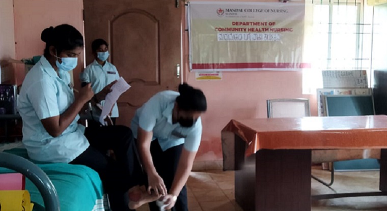 A role play was performed on the importance of screening, early diagnosis and accessing health care at time by  2nd year BSc Nursing students which was followed by health education on management of diabetes mellitus by Umair Shah and Nikhil Castelino.  A demonstration of foot care was performed by Jesvita and Anishka. The vote of thanks was given by Flavian D'souza and Mrs Manjula also concluded the meeting.