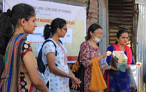 As part of Swachh Bharat Abhiyan, the students of Manipal College of Nursing Manipal organized a slum visit on 2nd October, 2019 from 10.30 am to 12 noon at Beedinagudde slum, Udupi to create awareness among slum dwellers about plastic ban.