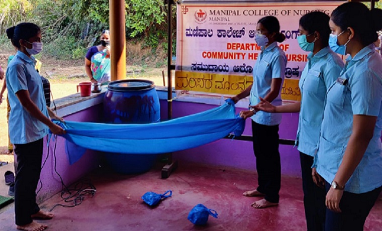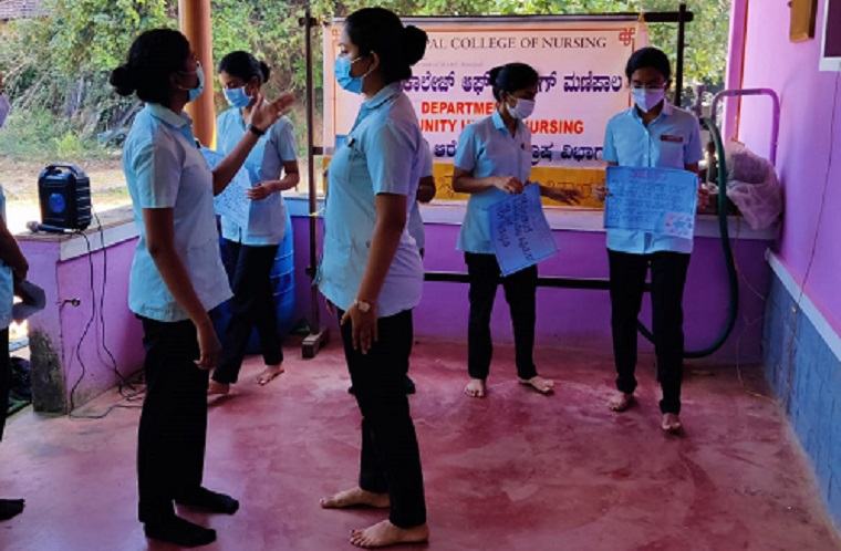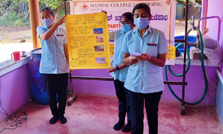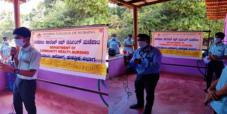 Second Year BSc Nursing students (Batch-III) along with the faculty, Department of Community Health Nursing, MCON, MAHE organized an awareness program on Pollution prevention on 29th December 2021 at 11 am in Vishweshwar Nagar, Hirebettu.
