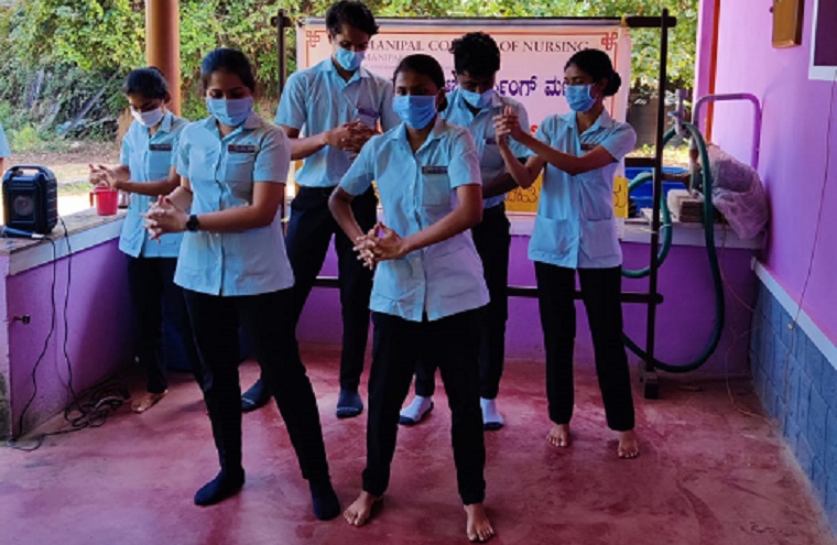 A role play on types of pollution, consequences & its prevention was performed by the students which were substituted by narration on different types and prevention with the use of charts and flashcards which was followed by an action song to demonstrate hand hygiene by the 2nd year BSc Nursing students. Dr Shashidhara YN, Professor & HoD, Dept. of Community Health Nursing, MCON, MAHE, Manipal addressed the audience on the significance of protecting the environment. He also appreciated the effort of the students.