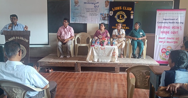 The program was started with an invocation by Ms. Nelifer Shreya and Ms.Glanish Aranha, which was followed by a welcome address by Ms.Glanish Aranha, 2nd year PBBSc Nursing student. The program was inaugurated Ln. Mr.Felix D’Souza, President, Lions Club, Shirva, Mrs. Sabeena Priya Noronha, Principal, St.Mary’s High school, Shirva, Ms. Nisha, Community Health Officer, Shirva, Dr Shashidhara YN Head Department of Community Health Nursing MCON and, Ms.Tejaswi the student representative by lighting the lamp