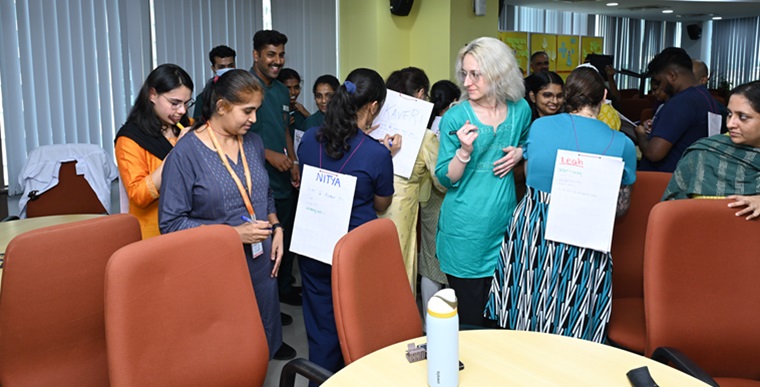MAHE FAIMER International Institute, in collaboration with MGH Health Profession Education, Boston, Manipal College of Nursing, and CCEID, jointly organized effective interprofessional team building for quality teaching and practice. Faculty and students from Medicine, Dental, Nursing, Pharmacy Practice, Pathology, Allied, Reproductive Science, Commerce, Microbiology, Basic Medical Science, and MGH Boston students actively took part in the team-building activities. Learning with fun-filled activities made the interprofessional teams engage effectively. The workshop was inaugurated by Dr Judith A Noronha, Dean MCON, Professor Elissa Ladd, and Dr Kaveri M Roy MGH Boston graced the occasion with glimpses of effective interprofessional dreams coming true. Dynamic group activities were initiated by Dr. Elsa Sanatombi Devi, Director, MAHE FAIMER Institute; Dr. Ramprasad, Professor and Head of Public Dentistry, MCODS Manipal; and Dr. Sushmitha R. Karkada, Assistant Professor, MCON, MAHE, Manipal, who actively engaged in effective interprofessional team building.