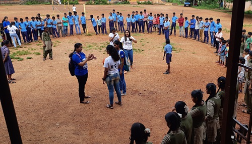 Kreeda Anand: An interactive session with students of a high school in Rajeev nagar was held on 6th October 2018. The students of standard 8th, 9th and 10th were introduced to the team of volunteers of MCON. Happy dots signifying the spirit of Daan Utsav were distributed among the students, to mark the beginning of the celebrations. Multiple indoor and outdoor games were played with the students. Outdoor games included ‘Bomb in the City’ and ‘Dodgeball’. Indoor games were ‘Burst the Balloon, Marble Race, Straw with a Hole, Confetti Swap, etc. Prizes were distributed for first and second place in each of the games. The students also displayed their talents. Three students whose birthdays are in October were given extra gifts.