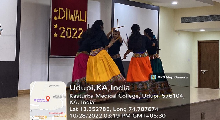 The Diwali celebration was organized by the Cultural Committee of the Student Nurses Association on 28 October 2022 at 3.00 pm at Dr.TMA Pai Hall, II floor. The Master of the Ceremony of the event Miss Rose Maria Baby, III year BSc Nursing welcomed the gathering. Students of I, II, and III  BSc Nursing entertained the faculty and students with their remarkable dandiya dance performances.