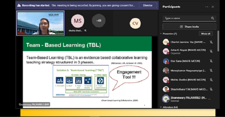 Dr Melita Sheilini, Assistant Professor -Selection grade, Dept. of Medical Surgical Nursing MCON, MAHE, moderated the session and Mrs Asha K Nayak, Assistant Professor-Sr. Scale, Department of Psychiatric (Mental) Health Nursing managed the event and Dr Elsa Sanatombi Devi, Professor, Department of Medical-Surgical Nursing was the convener. A total of 72 professionals participated from across the globe in this virtual symposium.
