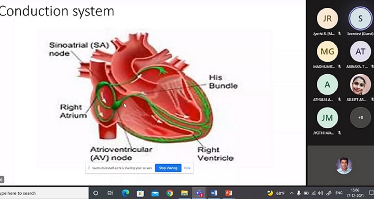 Department of Medical-Surgical Nursing, Manipal College of Nursing, Manipal organized a Guest Lecture on “Management of Arrhythmias” on December 17, 2021, between 3.00 pm & 4.30 pm to students of Nurse Practitioner in Critical Care (NPCC) residential program and MSc Nursing through Microsoft Teams Platform. Mrs Sreedevi P S, Nurse Practitioner, EMS ICU, MGM Hospital, Navi Mumbai spoke on the topic. She emphasized on reviewing the basic anatomy of cardiac conduction system, the basics of ECG analysis and a detailed deliberation on identification of various arrhythmias and their management modalities. A total of 28 participants including 1st and 2nd year NPCC students of MCON and MVJ College of Nursing Bangalore, 2nd year MSc Students, alumni members, and faculty members of the department participated in the session.