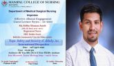 Mr Anil Raj A, Assistant Professor, Department of Medical-Surgical Nursing, MCON introduced the speaker and Ms Janet Alva, Assistant Professor, Department of Medical-Surgical Nursing, MCON expressed gratitude to Mr Jeffin Thomas Jacob for accepting the invite and sharing his expertise on the subject with the students. The interesting, inspiring and elaborate session ended at 03:15 pm.