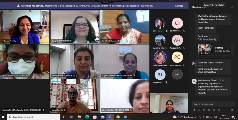 Manipal College of Nursing, Manipal Academy of Higher Education, Manipal, organized the INDO - UK workshop on Systematic Review and Meta-analysis through the virtual mode from 22 November 2021 to 26 November 2021. This workshop was supported by the financial grants from SPARC & UKEIRI SPARC support programme.