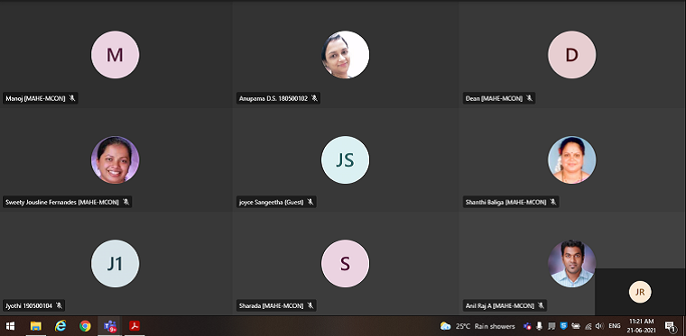 Yoga helps to integrate the mind, body and soul. International Yoga Day is an annual event commemorated every year on 21 June from 2014, when a resolution to adopt June 21 as the International Yoga Day proposed by India was supported by 177 nations at the UN. Department of Medical-Surgical Nursing, Manipal College of Nursing, MAHE, Manipal conducted a webinar as part of International Yoga Day 2021. The topic for the webinar was “Advantages of Yoga and Ayurveda in Modern Life”. Dr Sunil Kumar (BAMS, ND), chief physician at AyurAshram, Pachalloor post, Thiruvananthapuram delivered the webinar. A total of 67 participants with different professional backgrounds have attended the session. Dr Sunil Kumar spoke about yoga, different postures for yoga and their benefits, certain practice tips while performing yoga, relaxation, and meditation. He also emphasised the special precautions to be taken by people diagnosed with abdominal hernia, arthritis, back or neck pain, chronic bronchitis and emphysema, depression, epilepsy, high blood pressure, heart disease and obesity while practising yoga. He talked extensively on Ayurveda with special emphasis on Panchakarma therapy and its benefits. He elaborated on Abhyanga, Pizhichil, Gandoosha, Sirodhara, Snehaavagaha, Tharpana and different other Ayurvedic treatment procedures. He also highlighted the importance of herbal remedies in maintaining wellness. This webinar was conducted as instructed by University Grant Commission (UGC) vide its Circular dated 14th June 2021 and was coordinated by Dr Jyothi Chakrabarty Professor & Head, Dept. of Medical-Surgical Nursing, Manipal College of Nursing, MAHE, Manipal.