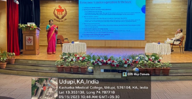 The chief guest Dr. Sharath Kumar Rao K, Pro Vice-Chancellor (Health Sciences), MAHE, Manipal, in his address, focused on the importance of acquiring creativity, humility, and qualities in being a good leader. He stressed the basic skills needed in every leader, especially in the healthcare arena. He also spoke about the importance of being progressive and moving along with the changing generation and technological advancement in the area.