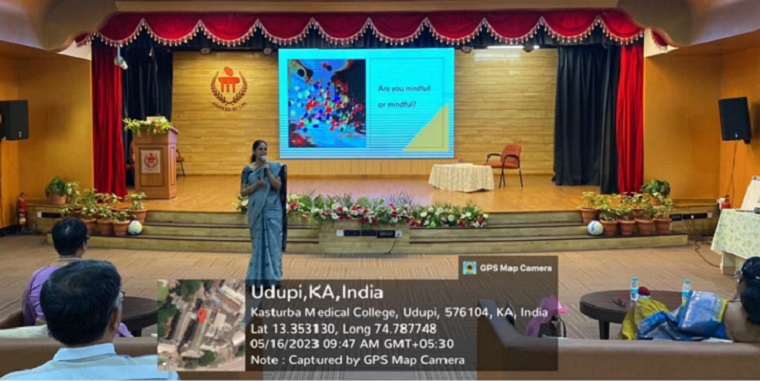 The second session of the workshop was on “Leadership-Humility-Efficiency” by Dr. Sudhakar Nayak, Former Director, Manipal Centre for Professional and Personal Development, MAHE. Dr Nayak highlighted the qualities of how to be an efficient leader by being a good problem solver and decision maker. He also emphasized how to resolve conflicts, confusion, and dilemmas by reflecting on our thoughts and still retaining purity and innocence despite the chaos.