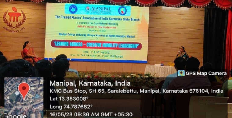 "Leading Across- Creative Humility Leadership” workshop was organized by Manipal College of Nursing (MCON), Manipal Academy of Higher Education (MAHE), Manipal in collaboration with the Trained Nurses’ Association (TNAI) of India Karnataka State Branch on the 15th and 16th of May 2023 MAHE, Manipal.