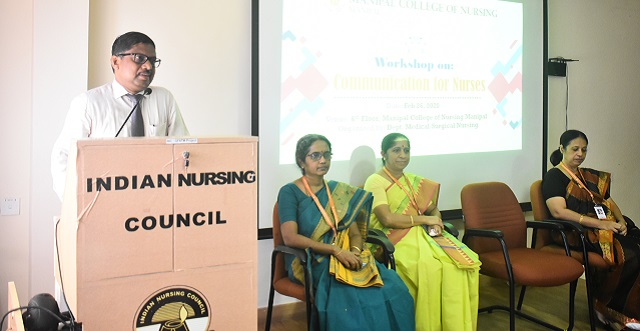 The workshop was inaugurated by Dr Avinash Shetty, Medical Superintendent, Kasturba Hospital Manipal. During his inaugural address he has emphasized the importance of communication in a health care setting with a quote “If you want to be a good communicator, you have to be a good listener”. Dr. Anice George Dean, Dr. Judith Noronha, Associate Dean and Dr. Jyothi Chakrabarty, Departmental Head, Medical Surgical Nursing Manipal were present during the inaugural function. Mr. Anil Raj, Faculty MCON Manipal delivered the vote of thanks during the inaugural function.
