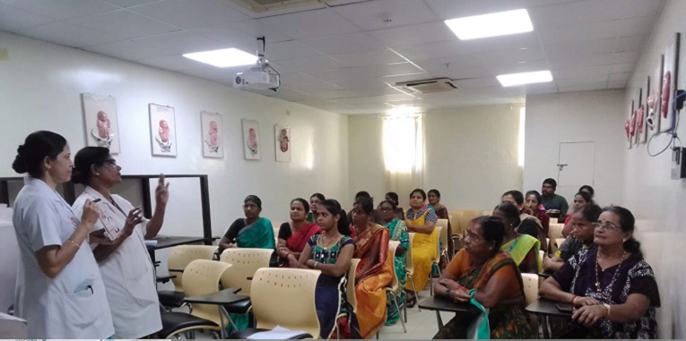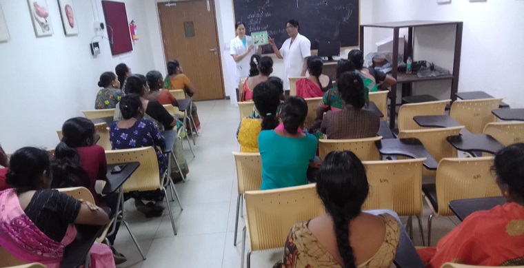 To sensitize on home care of newborns, the department of child health nursing, MCON conducted an awareness program on 18th November 2022 between 10.30 am to 12.00 pm. Dr. Yashoda Sathish, Assistant Professor of the department gave a talk on the importance of breastfeeding, early initiation, the composition of breast milk, various positions, and attachment while feeding. Also stressed minor ailments in newborns and weaning. Mrs. Anusuya V Prabhu, Assistant Professor of the department highlighted hygienic practices, danger signs, and immunization.