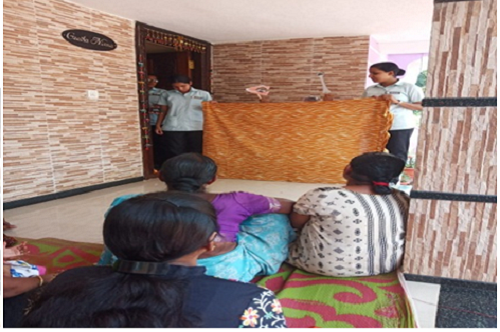 Students prepared the food keeping all the principles of cooking. A puppet show on the topic problems of iron and calcium deficiencies was conducted in the beginning to capture the attention of the participants. The importance of iron and calcium and the dietary requirement were explained to the group by the students. The modified menu was explained by showing the sample. A total of 15 people from different families participated for the programme. The prepared food was served to the participants. Family members were pleased and appreciated the work of students and also expressed the programme was informative.