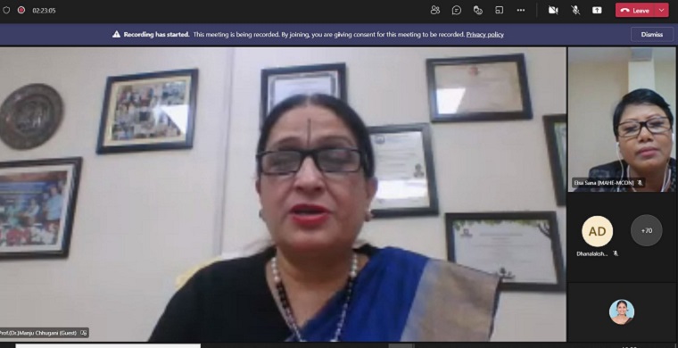 The second oration on the topic “Strategic Research in Nursing – A Way Forward for Global Health” in memory of Dr. (Late) Aparna Bhaduri, the PG coordinator was orated by Prof. (Dr.) Manju Chhugani, Dean and Head of Department - Obstetrics and Gynecology Nursing and Paramedical Sciences, Jamia Hamdard. Dr Manju highlighted the importance of strategic research and how strategic researches can be taken-up in Nursing. The oration gave insight on the development of new programs and evidence generation in nursing, improvement in quality of nursing care, to disseminate and share the research findings and prepare for a culture change by taking up strategic researches in the clinical practice. Dr Elsa Sanatombi Devi, Professor of Medical-Surgical Nursing, MCON, MAHE, moderated this oration by introducing Dr. (Late) Aparna Bhaduri and the speaker and also coordinated the program.