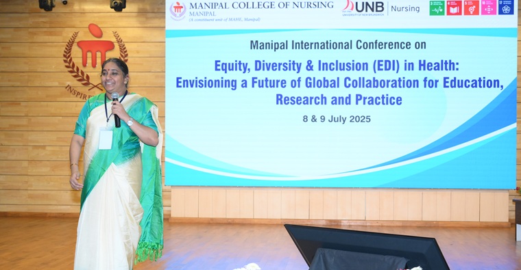 Manipal College of Nursing, Manipal Academy of Higher Education, Manipal, organized Alumni Oration lecture on 09th July 2025, in memory of Nursing visionary, Professor P P Bhanumathi, Founder Dean & Professor, at Manipal College of Nursing, MAHE, Manipal. The oration lecture was conducted along with two days of Manipal International Conference on “Equity, Diversity & Inclusion (EDI) in Health: Envisioning a Future of Global Collaboration for Education, Research & Practice organized by MCON, Manipal, MAHE in association with Faculty of Nursing, University of New Brunswick (UNB), Canada.