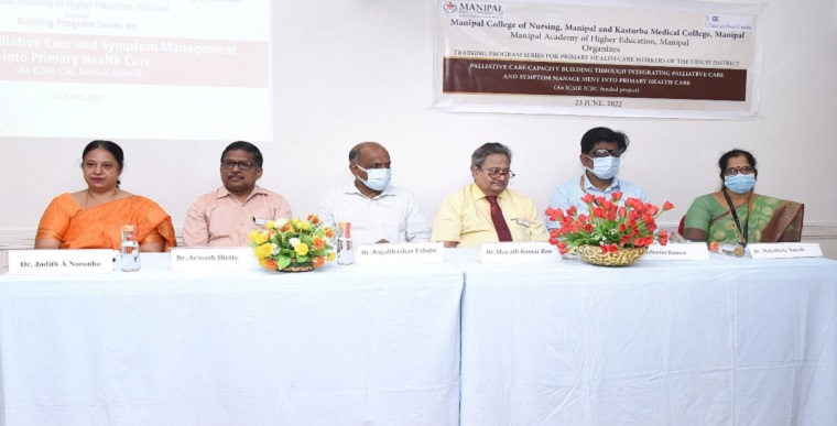 Manipal College of Nursing, Manipal, MAHE, Manipal and Kasturba Medical College, Manipal organized the inauguration of training program series for Primary Health Care workers on the topic “Effectiveness of capacity building- Integrating palliative care and symptom management” on 23rd June 2022 at 9.30 am at the Conference Hall of Shirdi Sai Baba Cancer Hospital and Research Centre, Manipal. Dr. Judith A Noronha, Dean, MCON welcomed the gathering. The Chief Guest of the program Dr. Nagabhushan Udupa, District Health and Family Welfare Officer, Udupi District highlighted the important role played by the ASHA workers in health care delivery. He also advised the participants to learn various aspects of palliative care delivery and thereby help the family members in their respective villages. Further, the Guests of Honor for the event Dr. Sharath K Rao, Dean, KMC Manipal, Dr. Avinash Shetty, Medical Superintendent, Kasturba Hospital Manipal, and Dr. Ashwini Kumar, HoD, Department of Community Medicine, KMC also addressed the gathering. Dr. Malathi G Nayak, the Principal Investigator of the Project thanked the gathering. A total of 70 primary health care workers participated in the program.