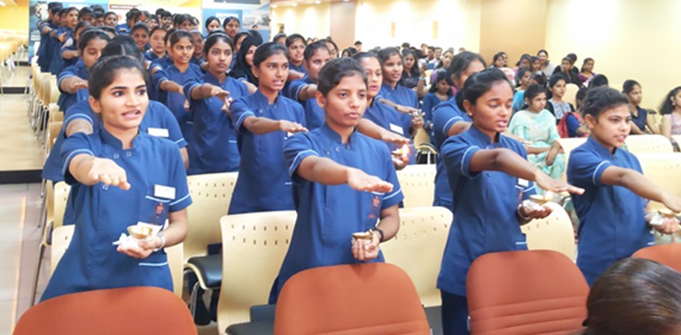 Ms. Olga Gershuni, Lecturer, Fontys University of Applied Sciences, Eindhoven, The Netherlands, was the chief guest for the program. She congratulated the students who lit the lamp and addressed the importance of lighting the lamp. She also stressed the qualities of a professional nurse and highlighted that education is not just the acquisition of knowledge; it also helps to shape the character of a person, and the power of holistic care will help a nurse become empathetic and kind.