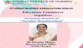 The Education Committee of Student Nurses’ Association 2020 -21 of Manipal College of Nursing Manipal has organized an awareness session on the topic “Gender Sensitization” on 12th February 2021 between 5:00 pm & 6:00 pm. Dr Geetha Maiya, Director-Student Affairs, MAHE, Manipal was the resource persons for the session. She spoke about gender, gender equality and inequality, problems of gender inequality, major reasons for gender discrimination, sexual harassment at workplace, sexual harassment prevention training etc. She also highlighted about what MAHE is doing towards gender discrimination, gender champion workshop and also about the Internal Complaints Committee of MAHE, Manipal.