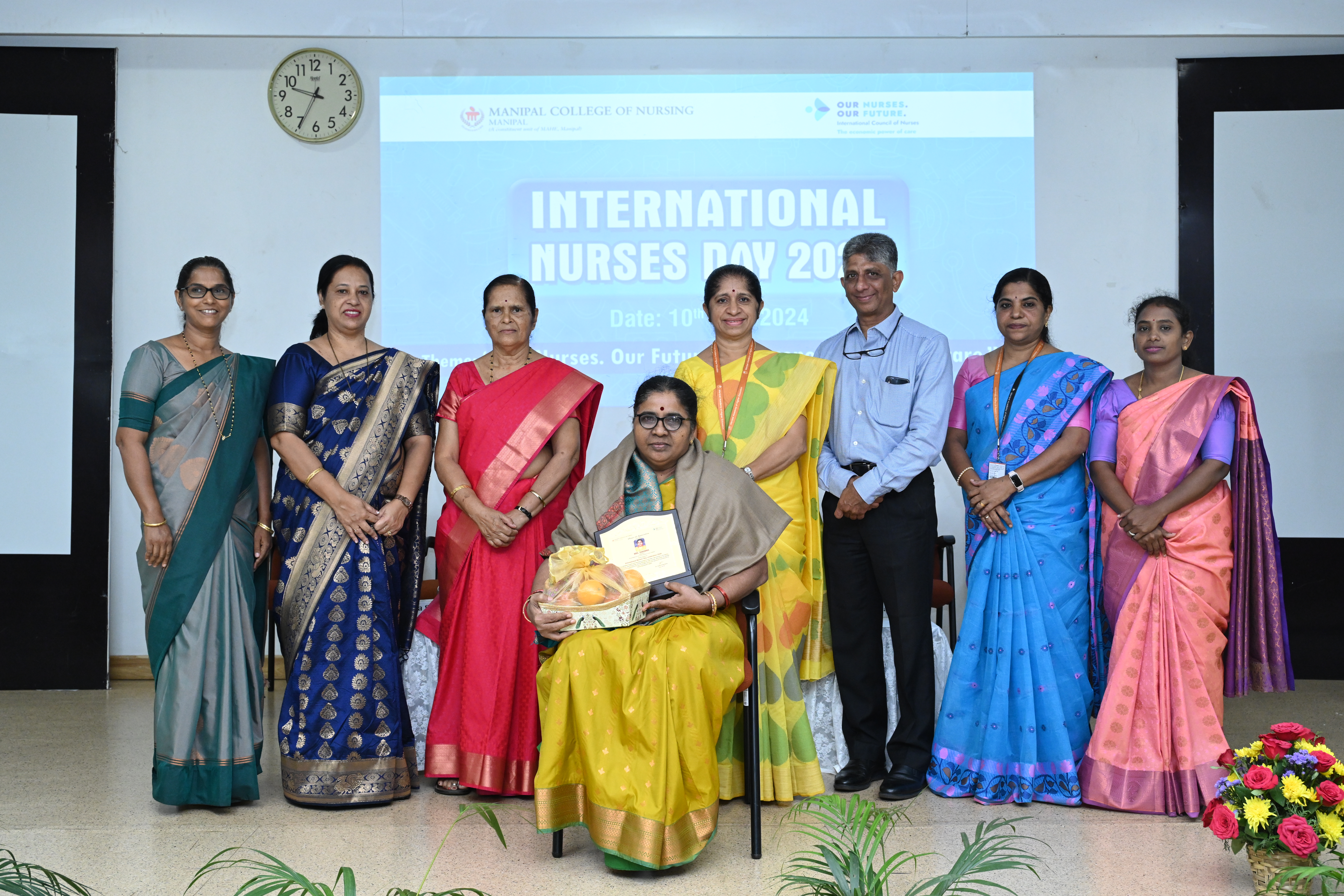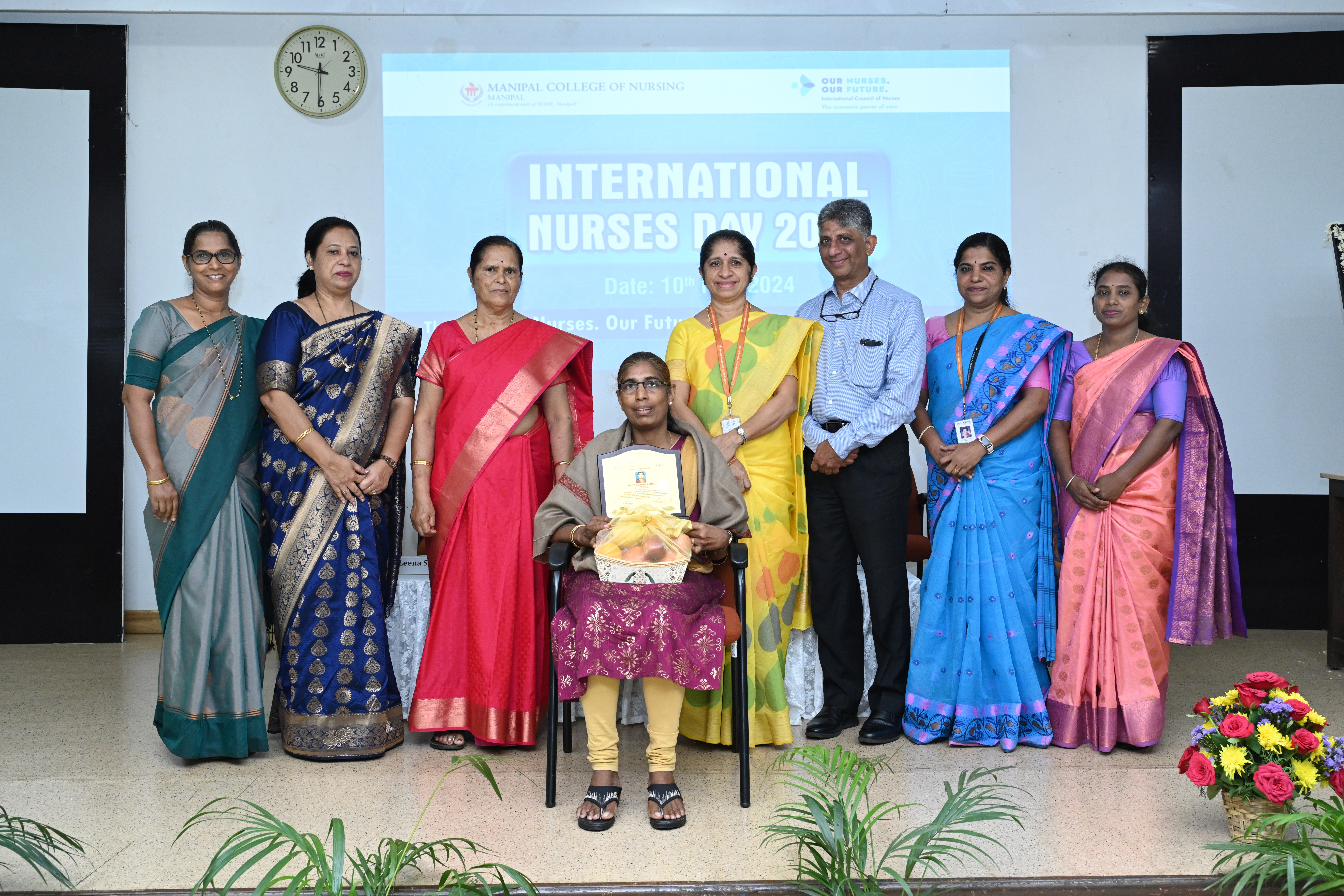 Two distinguished nurses, Ms. Vivian Wilfred Soans, a retired Staff Nurse from Kasturba Hospital, Manipal, and Mrs Sakamma, a retired ANM staff member from Rural Maternity and Child Welfare Home, Kadekar, were honoured for their outstanding contributions to patient welfare and community care services, as well as their support for student learning. Dr. Leena Sequira, Principal of Manipal School of Nursing, highlighted the accomplishments of these honoured nurses. Prizes were awarded to the winners of various competitions including poetry writing, elocution, collage, and poster design, all centered around the theme of International Nurses' Day 2024. Dr. Savitha Prabhu, Co-Convener, extended gratitude through the vote of thanks.