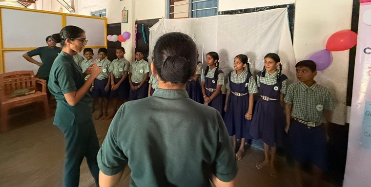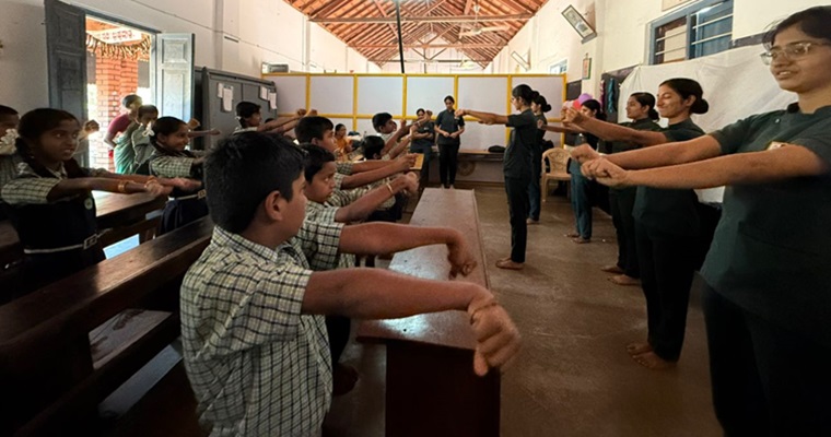The program commenced with a welcome address by Ms. Viola Fernandes, final Year BSc Nursing student, and followed by that, screening of school children was done. Ms Anitta Thomas, a final year BSc nursing student demonstrated yoga to the children, and all actively participated in the event. The final year B Sc Nursing students deliberated the session on “Healthy Choices and Happy Life” by using different AV aids such as charts, videos, and role play and enlightened the young minds on a healthy diet, exercise, healthy habits, personal hygiene, and highlighted the importance of having healthy behaviour.