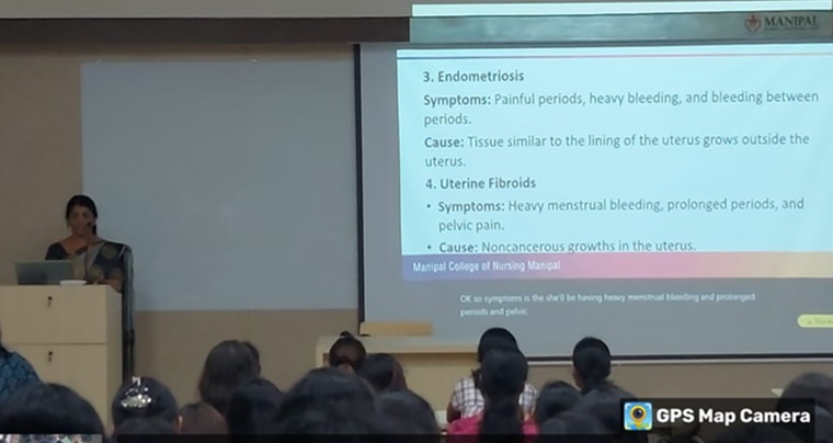 The Health and Social Welfare Committee of the Student Nurses Association, Manipal College of Nursing, MAHE, Manipal, organized a session on "Menstrual Hygiene" on August 3, 2024, between 11 am and 11.30 am for the first-year BSc Nursing students. Mrs. Pratibha, Assistant Professor – Senior Scale, Department of OBG Nursing, Manipal College of Nursing, MAHE, was the resource person. The session focused on rituals followed during menstruation in different religions, the availability of different sanitary products, how to maintain menstrual hygiene, including the usage and disposal of sanitary products, and the simple ways to maintain environmental hygiene in the college, hostel, and hospital. Around 102 students attended the session, and it was concluded with words of gratitude expressed by Ms. Riona Dsouza, Health and Social Welfare Committee chairperson, MCON, MAHE. The session contributes to SDG 3: Good health and wellbeing.