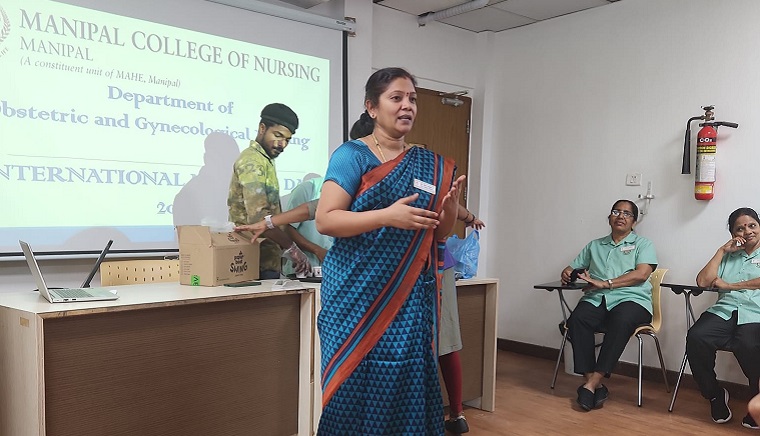The faculty of the Department of Obstetric and Gynaecological (OBG) Nursing along with II year MSc nursing students – OBG specialty, Manipal College of Nursing (MCON), MAHE, Manipal, organized an In-service education program for the staff nurses of Women and Child Health Block, Kasturba Hospital, Manipal based on the International Day of Midwives (IDM) theme “Together again; from evidence-based to reality.” The topic for the in-service education was ‘Real world significance of Evidence-Based Practice (EBP) for the midwife”, which was deliberated by Ms. Shobha, Lecturer, Department of OBG Nursing, MCON, MAHE, Manipal, who spoke a great deal on why EBP is essential for the practice of midwifery. She also elaborated on how EBP in nursing has changed a great deal of midwifery practice and how redundancy in professional practice is and can be reduced to a great extent. Many examples to explain this concept were also provided, which encouraged many nurses and midwives, to participate actively in the discussion that took place at the end of the session. A total of 36 participants, who included the nursing staff, Assistant Nursing Supervisors (ANSs), and the Nursing Quality team of Kasturba Hospital, Manipal attended the In-service education program. Participants provided feedback for the program.