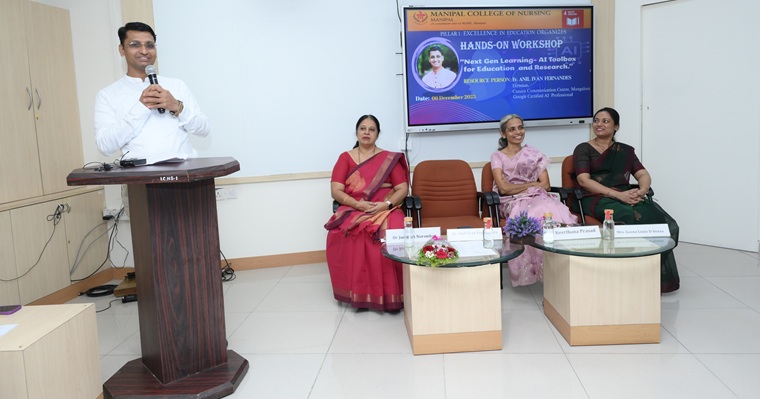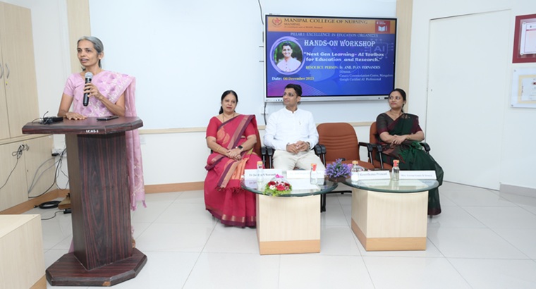 The Manipal College of Nursing (MCON), Manipal Academy of Higher Education (MAHE), under the initiative of Pillar I – Excellence in Education, organized a comprehensive workshop titled “Next Gen Learning – AI Toolbox for Education and Research” on 06 December 2025 at the Medical Education Hall, Second Floor, Library Building, MAHE, Manipal. The program aimed to enhance the understanding of faculty, researchers, and students regarding the effective integration of Artificial Intelligence (AI) tools and their application into teaching, learning, and research.