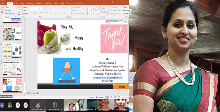 A session on ‘Importance of nutrition in physical fitness’ was arranged and Ms Swathy Acharya K, Assistant Professor – Senior Scale at Department of Dietetics and Applied Nutrition, WGSHA, MAHE, Manipal was the Resource Person for the same. Dr Melita Sheilini, Sports Advisor, MCON welcomed and introduced the speaker to the participants.