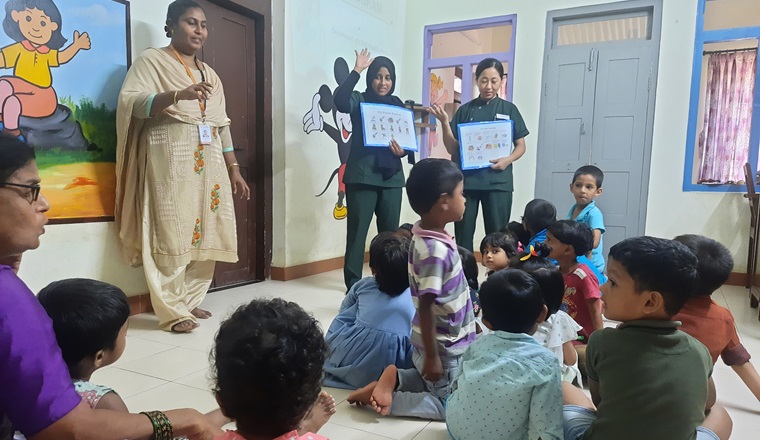 A total of 25 students and 5 teachers or caregivers actively participated in the program. Feedback was obtained from the caretakers and participants. The caretakers and the children appreciated the sessions and expressed that they were useful to them, and the sessions were well organized. The students expressed their gratitude to the caretakers for their support, hard work, and unconditionally taking care of all the children with so much patience and love. Students also extended their gratitude to the Department of Child Health Nursing, MCON, for arranging this opportunity to spend time educating the children. The program ended with the distribution of refreshments.